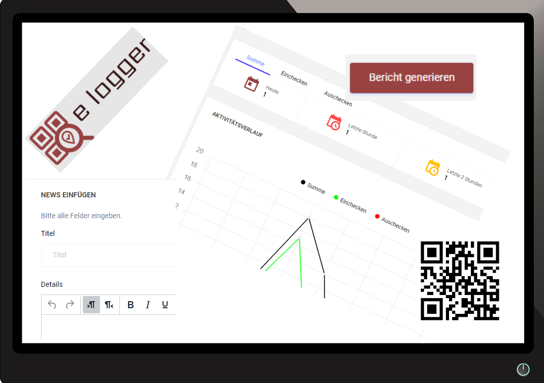 Für den Betreiber hat e logger übersichtliche und einfache Dashboards vorbereitet, wo die Betreiber unterschiedliche Berichte anschauen können, und Ihre Events und News bereitstellen können